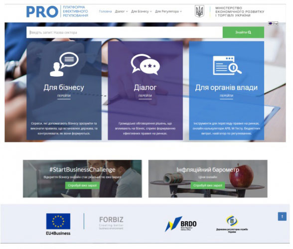 С целью построения публичного диалога между бизнесом и властью BRDO создана платформа эффективного регулирования PRO regulation.gov.ua, которая содержит прогрессивные онлайн инструменты: пошаговые инструкции как открыть бизнес, – сообщает исполком.