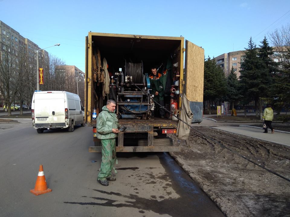 В настоящее время работы производятся на улице Дворцовой (от бул. Краматорского до ул. Юбилейная), где "трудится" каналопромывочная машина (мощностью 60 МПа, оборудованная реактивными насадками) в паре с илососной установкой.
