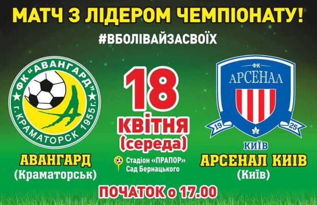 Сегодня, 18 апреля, "Авангард" на домашнем стадионе сыграет с лидером и главным претендентом на выход в Прьемьер-лигу, киевским "Арсеналом", матч начнётся в 17:00 на стадионе "Прапор".