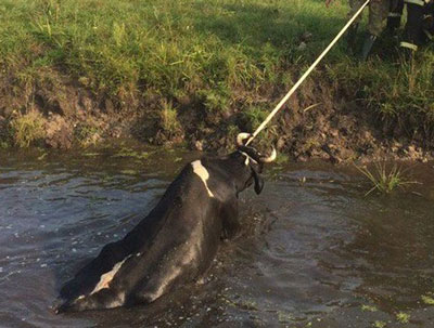 6 мая в 11.00 диспетчер Службы спасения «101» получил сообщение о том, что в реке Вторая Беленькая в иле застряла корова.