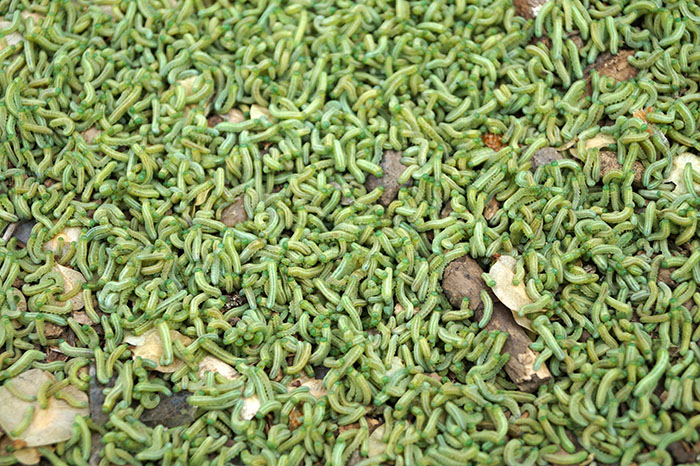 Миллионы тварей кишат на земле у ствола дерева, в остатках изгрызенных листьев, и расползаются по скверу.