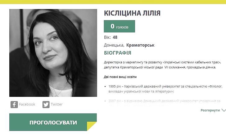 На сайте национального телепроекта «Нові лідери» открыто голосование за проект жительницы Краматорска Донецкой области Лилии Кислициной, которая вместе с командой единомышленников хочет создать Перинатальный центр в прифронтовом регионе, сообщает vchasnoua.com