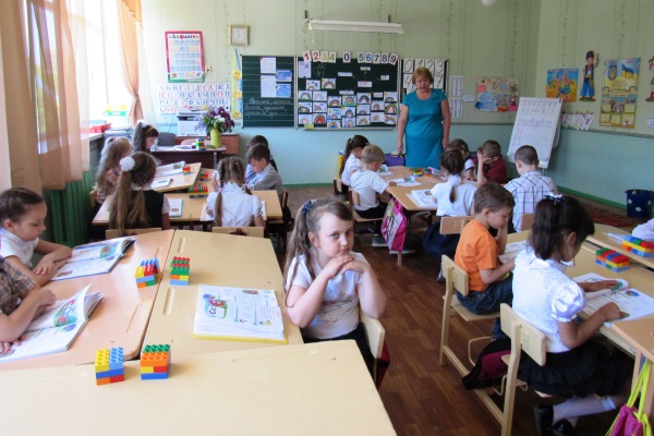 — Нам помогают очень сильно. На каждого ребенка бесплатно присылаются тетради, буквари, наглядный материал. Лего у нас — специально разработанное для обучения детей. Такое лего вы нигде не купите, может и купите, но у вас не будет какого-либо цвета. Наше лего — это методика, с его помощью мы развиваем и логику, и внимание, и быстроту мышления. Лего нам очень помогает в работе. Дети с ним работают и играют одновременно — складывают числа, придумывают слова на цвет, на первую букву. На каждого ребенка в классе есть контейнер с вещами детей. Портфелей у нас нет.