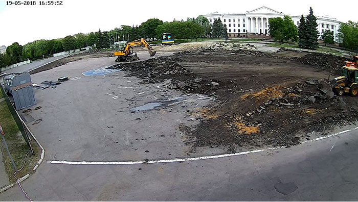 И вот сегодня, 19 мая, около 17 часов, землеройная техника, снимающая слой асфальта на площади, уже приступила к ликвидации участка с нарисованным символом.