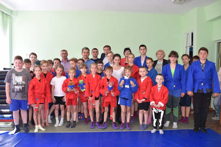 В рамках Всеукраинского проекта «Самбо в каждое учебное заведение» президент Донецкой областной федерации самбо Сергей Натрус торжественно подарил маленьким спортсменам новые борцовские маты для тренировок и кимоно.