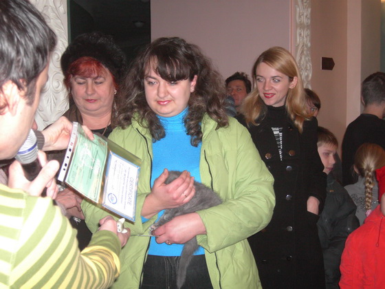 В рамках Открытого Чемпионата Украины 5 декабря в фойе ДКиТ НКМЗ проходил лотерейный розыгрыш котенка по кличке Бася. Порода – шотландский страйт, голубо-кремового окраса, из питомника Натальи Сиротенко. Такой котенок стоит в Краматорске от 1200 гривен.