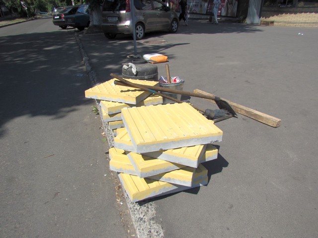 В центре Краматорска устанавливают тактильную плитку. Фотофакт