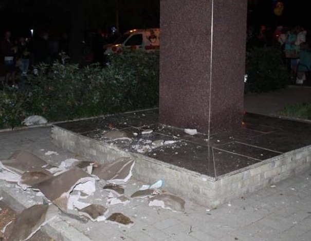 Тем не менее, вчера вечером на площади возле ДК им. Л.Быкова в Старом городе проходил праздничный концерт. Около 19:30 полицейские получили сообщение о том, что неизвестные пытаются залезть на постамент с бюстом Л. Быкова. И.о. заместителя начальника Краматорского отдела полиции Олег Рабичев рассказал, что в тот вечер на массовом мероприятии следил за соблюдением публичной безопасности. Получив сообщение, он с коллегами немедленно направился к постаменту. На месте они увидели свергнутый бюст и 2 парней.