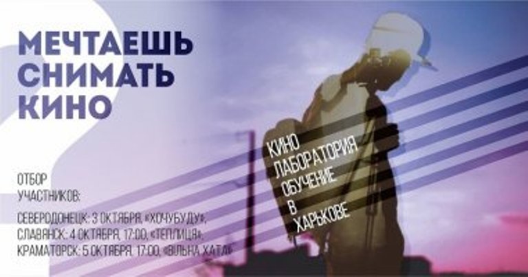 5 октября, в 17:00, в Краматорске, на базе молодежной платформы «ВІЛЬна ХАта» состоится отбор участников на обучение в кинолаборатории, которая будет проходить в Харькове с 8 октября в Academy of Visual Arts Kharkov.