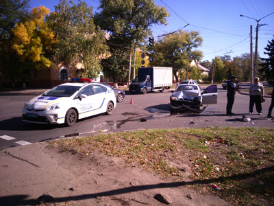 Вчера, 8 октября, около 11.00 в Краматорске на перекрестке улиц Ярослава Мудрого (бывш.19-го Партсъезда) и Дружбы (бывш.Ленина) столкнулись два автомобиля - ВАЗ и Ланос.