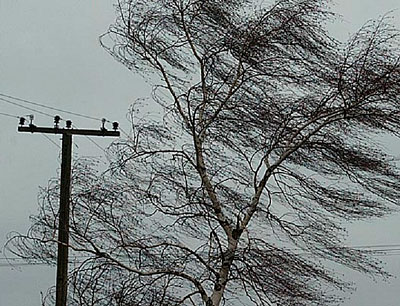 Такой ветер по шкале Бофорта характеризуется как очень крепкий и может валить сухие деревья.