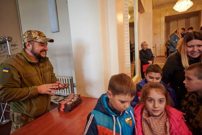 "Мои маленькие собратья, ради вас Объединенные силы сегодня здесь, - подчеркнул он. - Не ради каких-то политических целей, не ради собственных выгод. Наша цель - мир и благополучие всех украинских семей от запада до востока, от севера до юга. Дети не должны слышать залпы орудий и разрывы мин. Они должны слышать звонок родной школы».