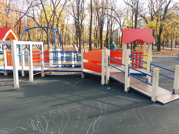 Детские площадки в парке Пушкина уже несколько месяцев радуют малышей и их родителей. Горки, карусели, лестницы, всевозможные прыгалки и домики. И среди всего прочего - несколько качелей для ребят, которые имеют проблемы с физическим здоровьем.