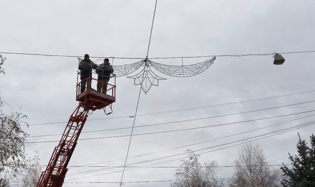 Праздник приближается! В Краматорске на Академической устанавливают ногоднее освещение