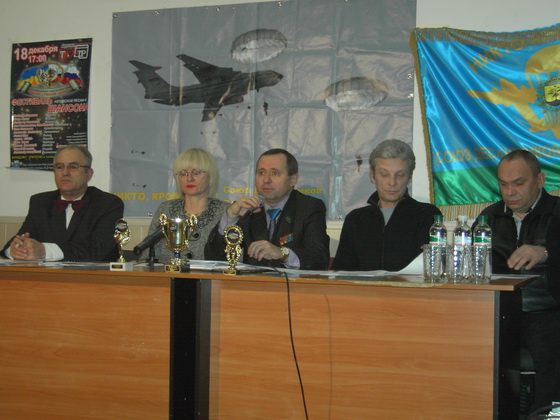 После подведения итогов деятельности общества перед присутствующими выступил исполнитель Олег Сокольвак. При поддержке союза десантников он представлял наш город на 1-м международном фестивале шансона «Украина и Россия – вместе!», который проходил 18 декабря в городе Николаеве. Песня Сокольвака «Две родные сестры» была признана гимном фестиваля, исполнитель был награжден кубком и дипломом за лучшую песню.