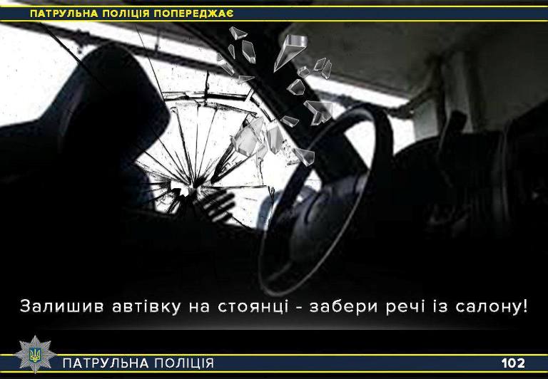 не оставлять в автомобилях ценные вещи. Как правило, во многих случаях добычей воров становятся GPS-навигаторы, видеорегистраторы, автомагнитолы, акустика. Из салона автомобиля так же «пропадают» сумки, ноутбуки, мобильные телефоны. При этом воры портят замки дверей, разбивают стекло, нанося тем самым значительный ущерб, чем стоимость похищенного имущества;