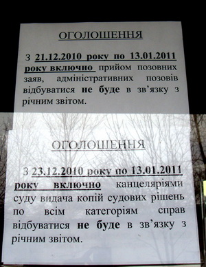 Каникулы продлятся до 13 января. Объявление об этом появилось при входе в здание суда.