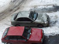 "По чистой случайности удалось избежать человеческих жертв, - рассказывает хозяйка "корейца" Наталья Середа. - Огромным смерзшимся куском льда машине проломило капот, даже двигатель ушел в сторону, повреждены оба крыла, передняя панель, разбита фара. Ремонт обойдется тысяч в пятнадцать гривен".