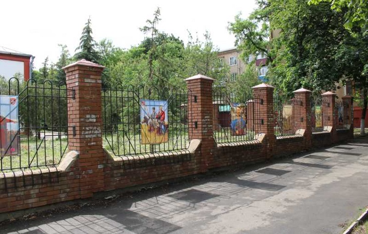 Представители украинского реестрового казачества разместили на заборе в сквере Шевченко 13 репродукций известных картин с изображением украинских казаков.