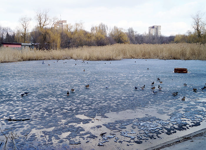 Итак, голодная и холодная смерть уткам не грозит, лед скоро растает, и озеро будет жить своей обычной жизнью. Если не отравится насмерть канализационными стоками.