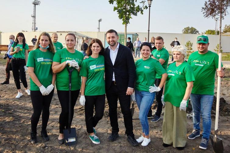 Давид Арахамия вместе с командой «Слуга Народа» высадил деревья в уникальном краматорском дендропарке