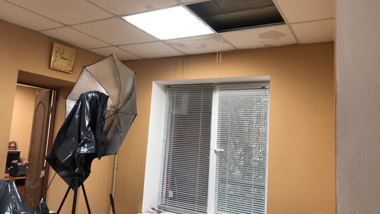 Дождь не только на улице, но и в кабинетах одного из государственных учреждений Краматорска