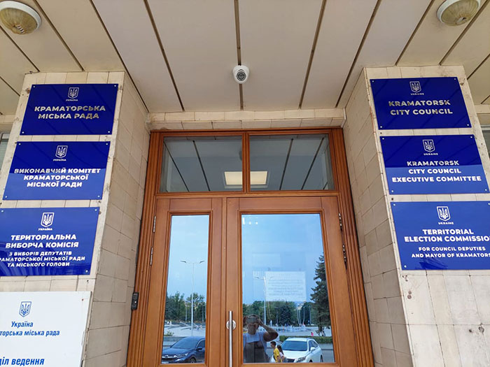 12 августа, на входе в здание горсовета Краматорска были установлены новые вывески.