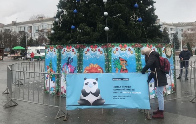 ФОТОФАКТ. У главной елки Краматорска появились яркие постеры о пандемии