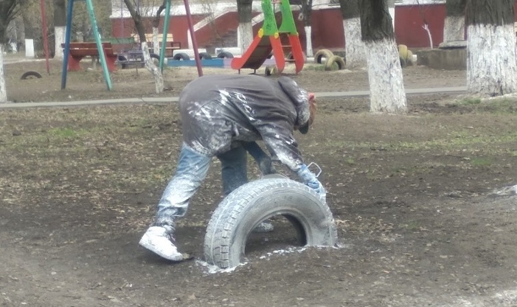 Фотофакт. В Краматорске белят деревья и покрышки автомобилей