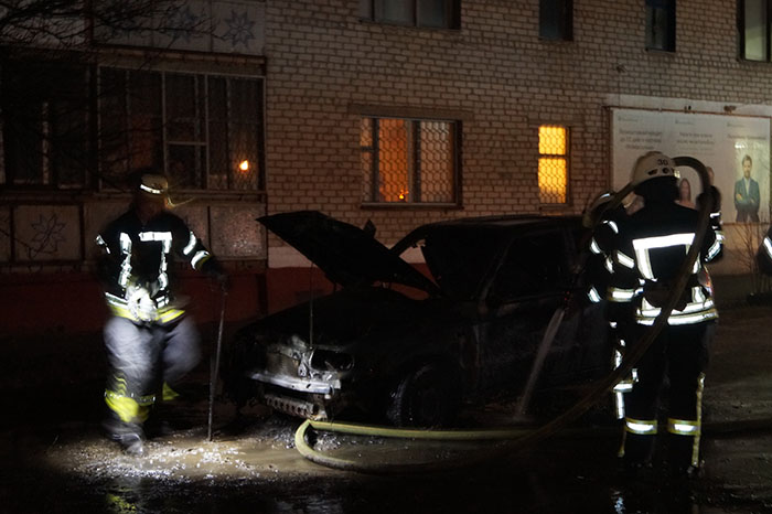 Около 6 часов вечера 5 марта на телефон Службы спасения поступило сообщение о возгорании автомобиля посреди дворе 9-этажного дома на улице Академической, 12 в Краматорске.