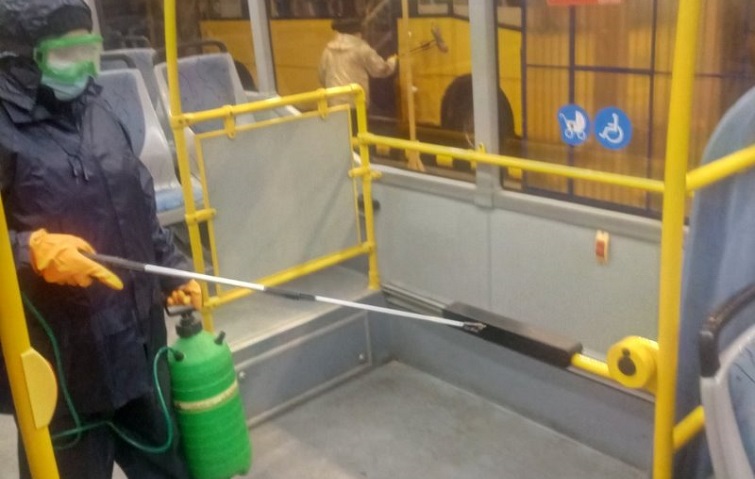 Дезинфекция в коммунальном транспорте осуществляется 2 раза в день, в частном - 1 раз в день. Кроме того, в салонах коммунального транспорта для пассажиров дополнительно установлены дозаторы с дезинфицирующим средством для рук. Информационное сообщение по профилактике инфицирования и распространения коронавирусной инфекции осуществляется с помощью системы внутреннего и внешнего звукового оповещения.