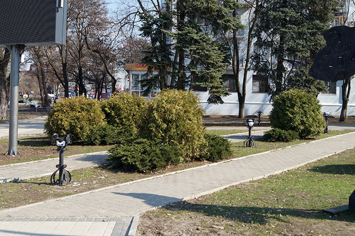Вот так выглядит сегодня часть сквера им. Шевченко, расположенном в самом центре Краматорска. Вандалы варварски разбили круглые пластмассовые фонари, украшавшие и освещавшие сквер.