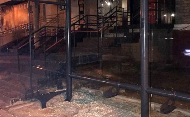 Той же ночью стекло остановки было уничтожено неизвестным быдлом.