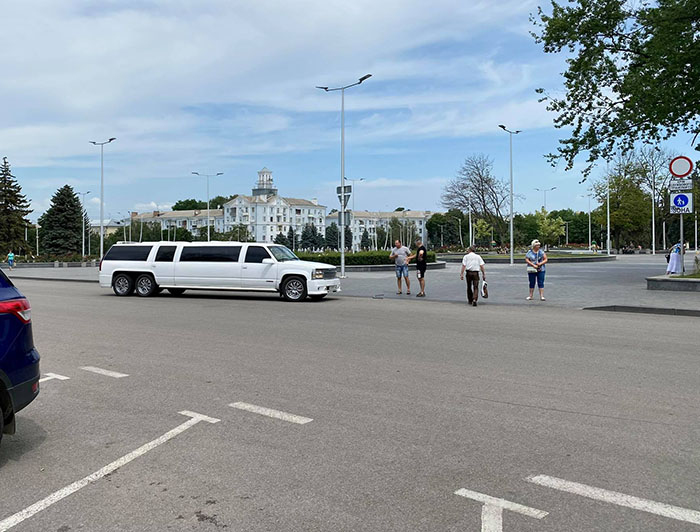 По словам очевидцев, лимузин сворачивал к зданию ДКиТ НКМЗ, и "подрезал" внедорожник. ДТП обошлось без пострадавших, а вот роскошным формам автомобилей был нанесен определенный ущерб.