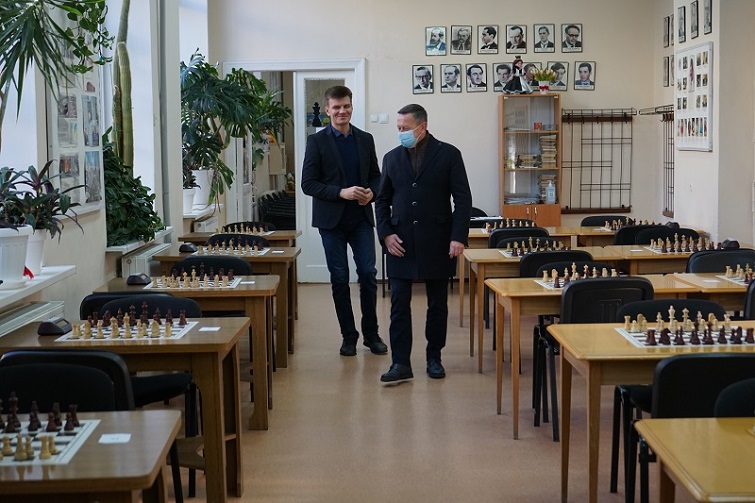 Александр Гончаренко во время рабочего визита в шахматный клуб ознакомился с работой заведения и обсудил с директором Александром Мартынковым акуальные вопросы.