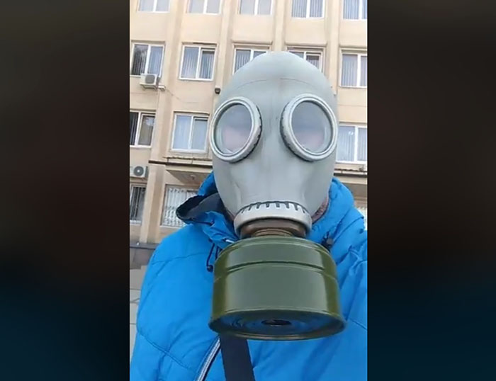 Горсовет Краматорска посетил с проверкой гражданин в противогазе