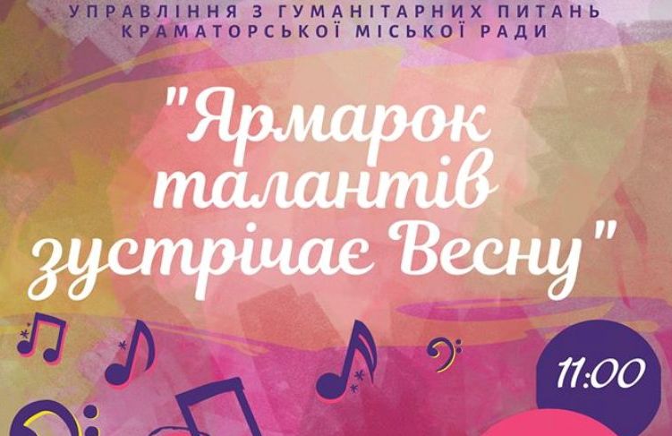 В Краматорске пройдет творческое мероприятие "Ярмарка талантов встречает Весну" 31 марта в сквере им. Т. Шевченко, начало в 11.00.