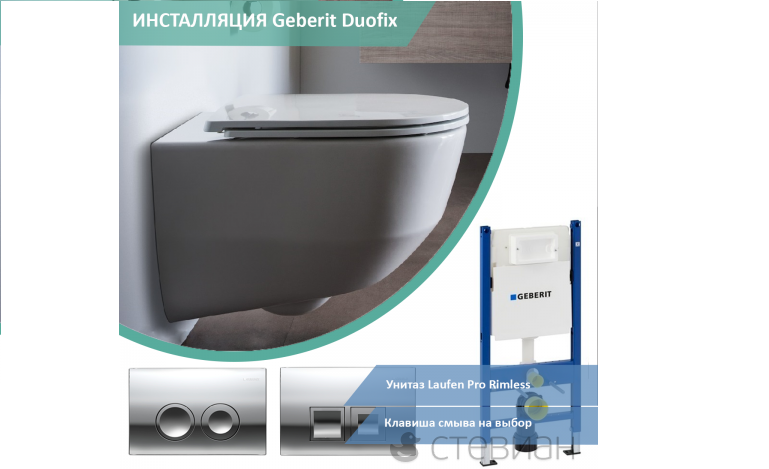- Удобство и простота монтажа конструкции Geberit инсталляции. Однако есть нюанс – проводить установку такого унитаза должен профессионал;