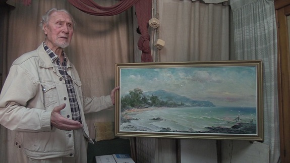 Поздравить юбиляра приехал и депутат городского совета Александр Гончаренко, который выразил свое восхищение творчеством художника и вручил ему памятный подарок: