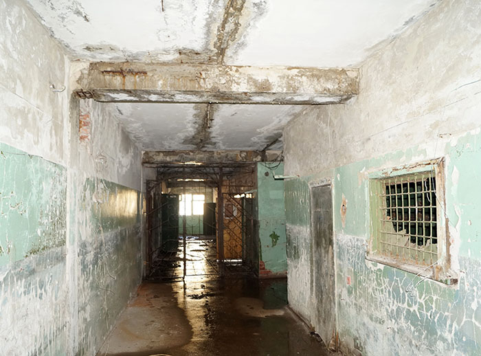 В помещении стоит дикий холод, отопления нет, электроосвещение присутствует лишь фрагментами.