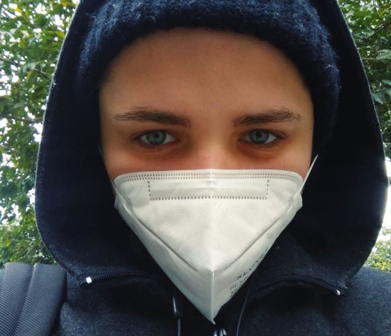 Я хожу в маске, только в магазин. Все дезинфицирую, все продукты мою с мылом. Мою руки очень часто с мылом. Никуда за пределы кампуса не выхожу и людные места не посещаю.