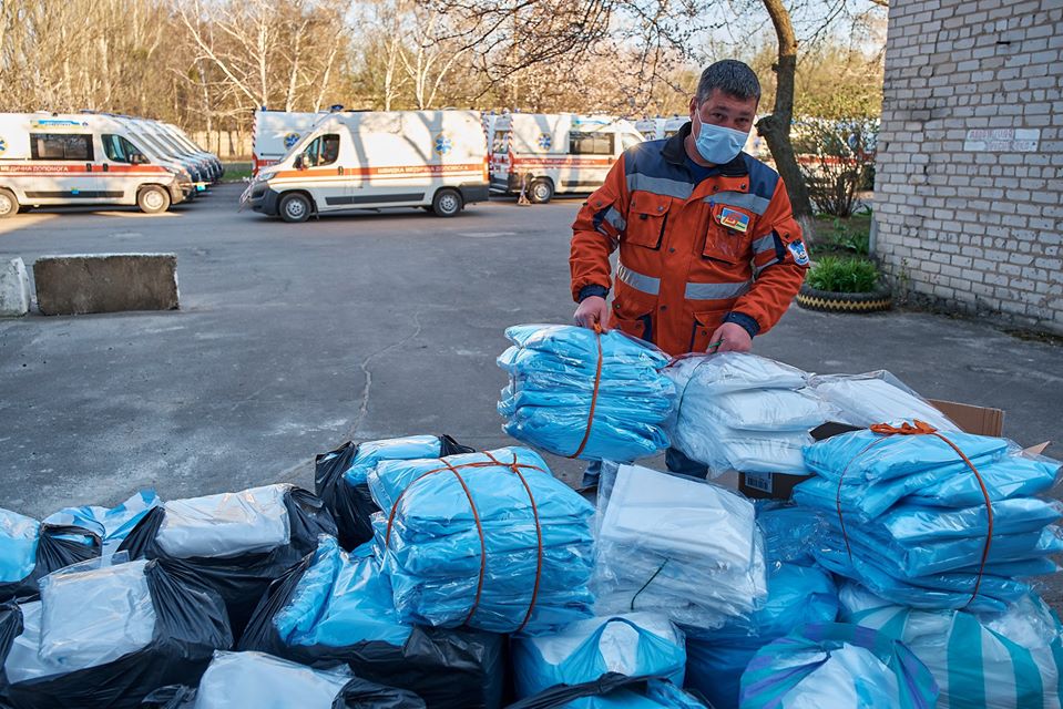 "Першу партію - близько 700 одноразових захисних костюмів передали для медиків Обласного центру екстреної медичної допомоги та медицини катастроф.