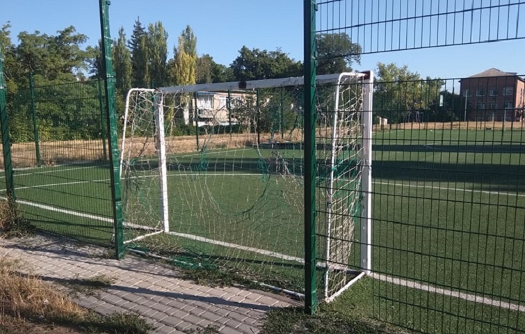 Сегодня же больно смотреть на то, что осталось от футбольного поля, а вернее от ограждения в ОШ № 24. Нелюди раскрутили ограждающую сетку, сняли двери на поле и повредили замок.