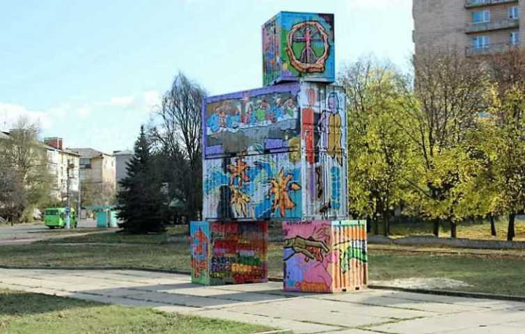 Самое бурное обсуждение среди краматорчан вызвала конструкция из морских контейнеров, установленная при входе в парк “Юбилейный”, которую расписал украинский художник Дима Фатум.