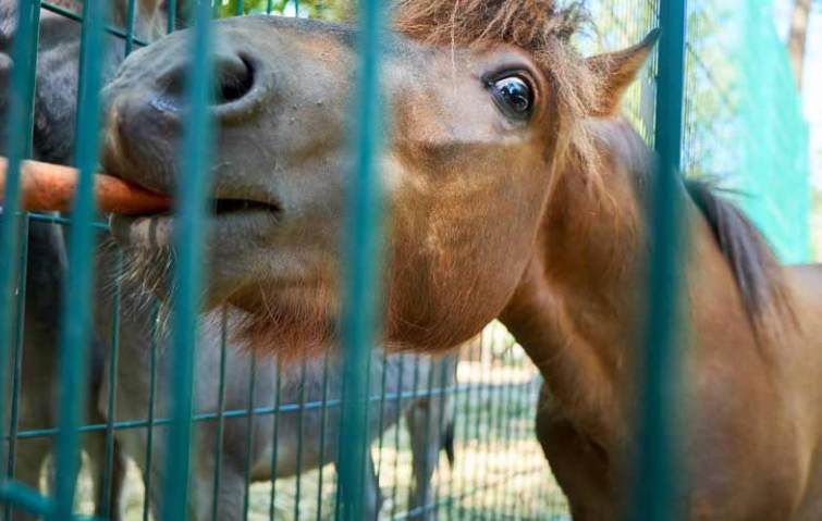 В парке поселились два осла и пони.