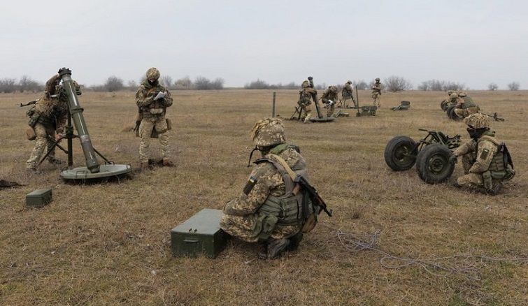 Военнослужащие проводят учебные стрельбы из стрелкового оружия.