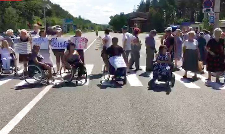 Біля Слов’янська на Донеччині люди з особливими потребами перекрили трасу міжнародного значення з метою привернути увагу до проблем «Славкурорту».
