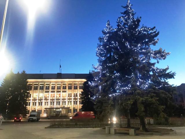 На главной площади Краматорска зажглись первые новогодние иллюминации