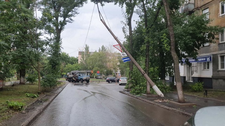Так, городской голова Краматорска Александр Гончаренко на своей странице в фейсбук предупредил жителей города о поваленном дереве и поврежденном столбе на перекрестке улиц Богдана Хмельницкого и бульвар Машиностроителей.
