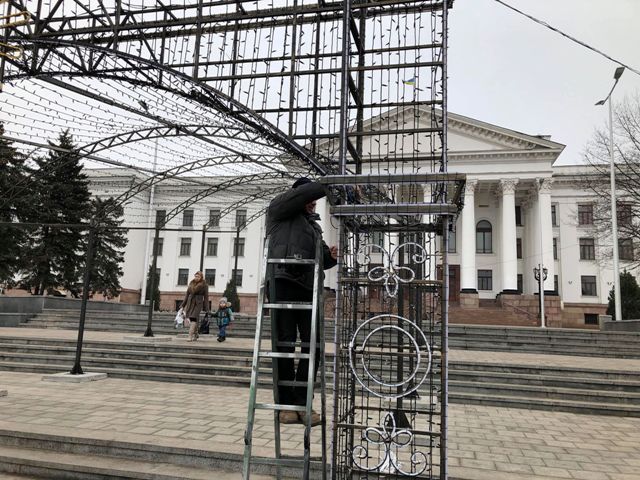На площади Мира в Краматорске идет ремонт иллюминации (фотофакт)